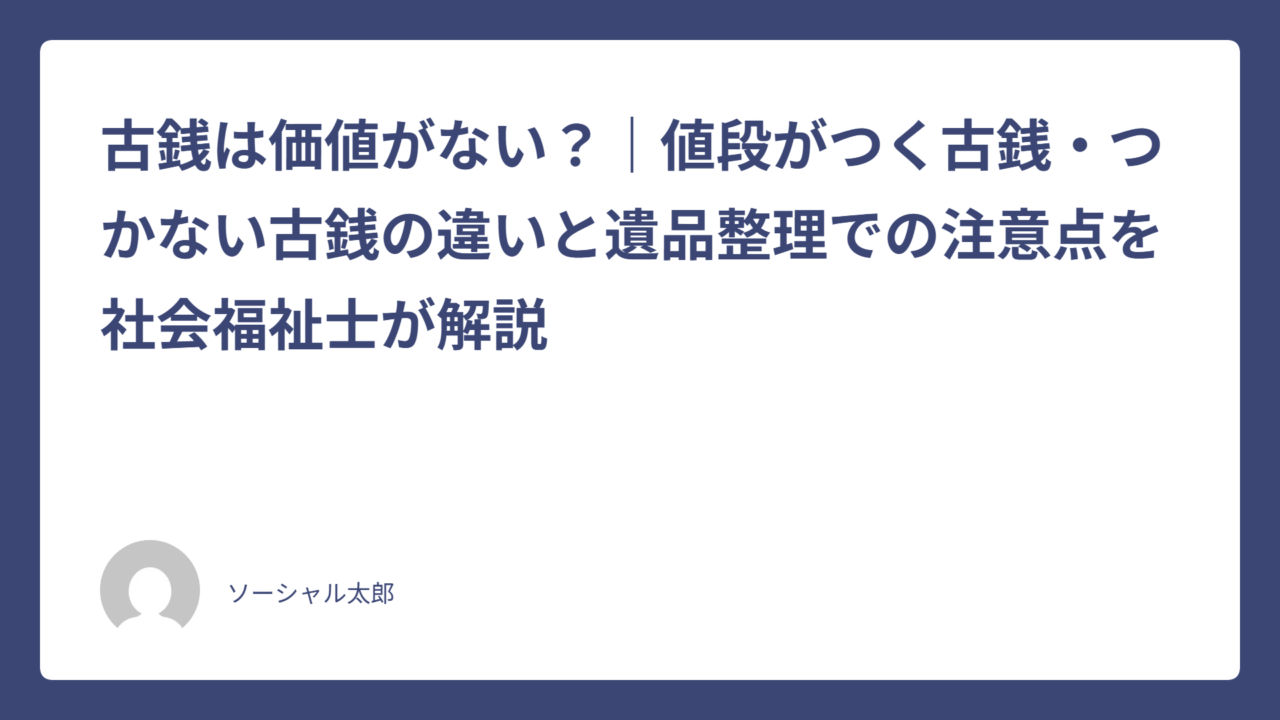 遺品整理の現場でも、「この古銭、捨てていいですか?」と聞かれることはとても多いです。社会福祉士としてご家族の支援に携わる中で、古銭を相場より安く買い叩かれてしまったケース、逆に価値がないものに期待しすぎてしまったケース、どちらも見てきました。