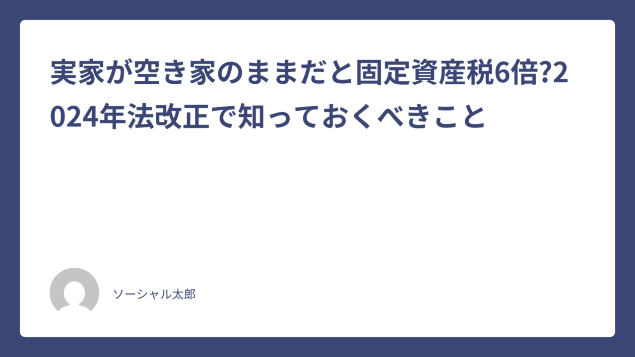 この記事では、社会福祉士として多くのご家族の支援に携わってきた経験から、空き家の固定資産税問題について、分かりやすく解説していきます。