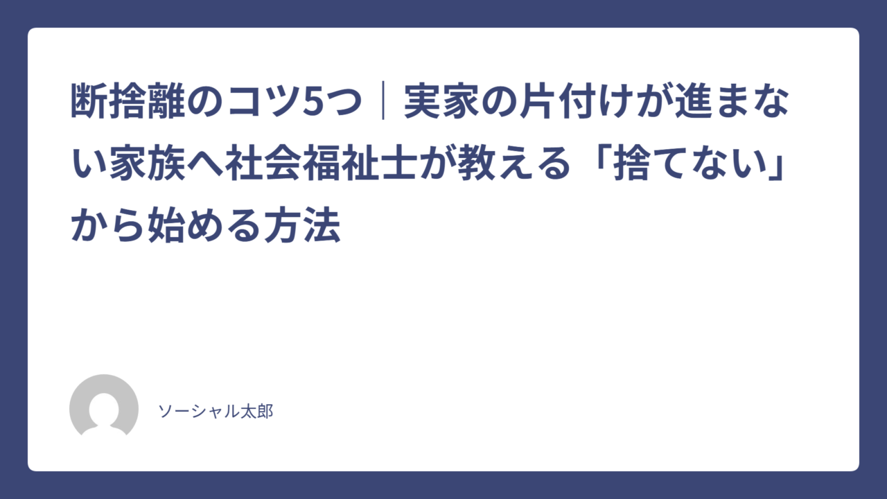 断捨離のコツ5つ|実家の片付けが進まない家族へ社会福祉士が教える「捨てない」から始める方法
