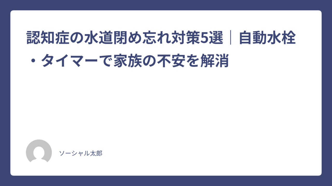 認知症による水道の閉め忘れは、叱ったり注意したりしても改善しません。自動水栓・タイマーなど「閉め忘れが起きない環境を作る」ことが最も現実的で効果的な対策です。まずは工事不要の自動水栓アダプターから試してみて、改善が不十分なら本格的な自動水栓交換や見守りシステムの導入も検討しましょう。介護の悩みは一人で抱え込まず、地域包括支援センターやケアマネジャーにも積極的に相談してください。
