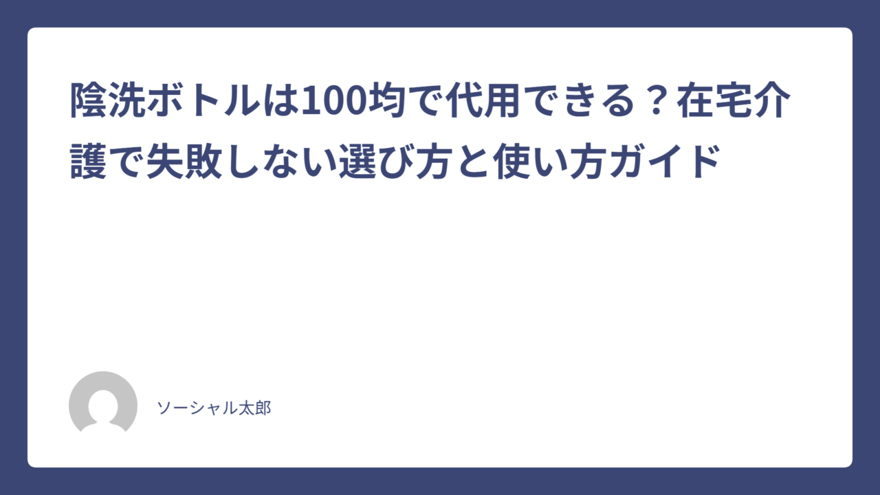社会福祉士として在宅介護のご家族をサポートしてきた中でも、「陰部洗浄のボトルは何を使えばいい?」というご質問はとてもよくいただきます。実際、現場でも100均の商品を上手に活用しているご家庭は少なくありません。