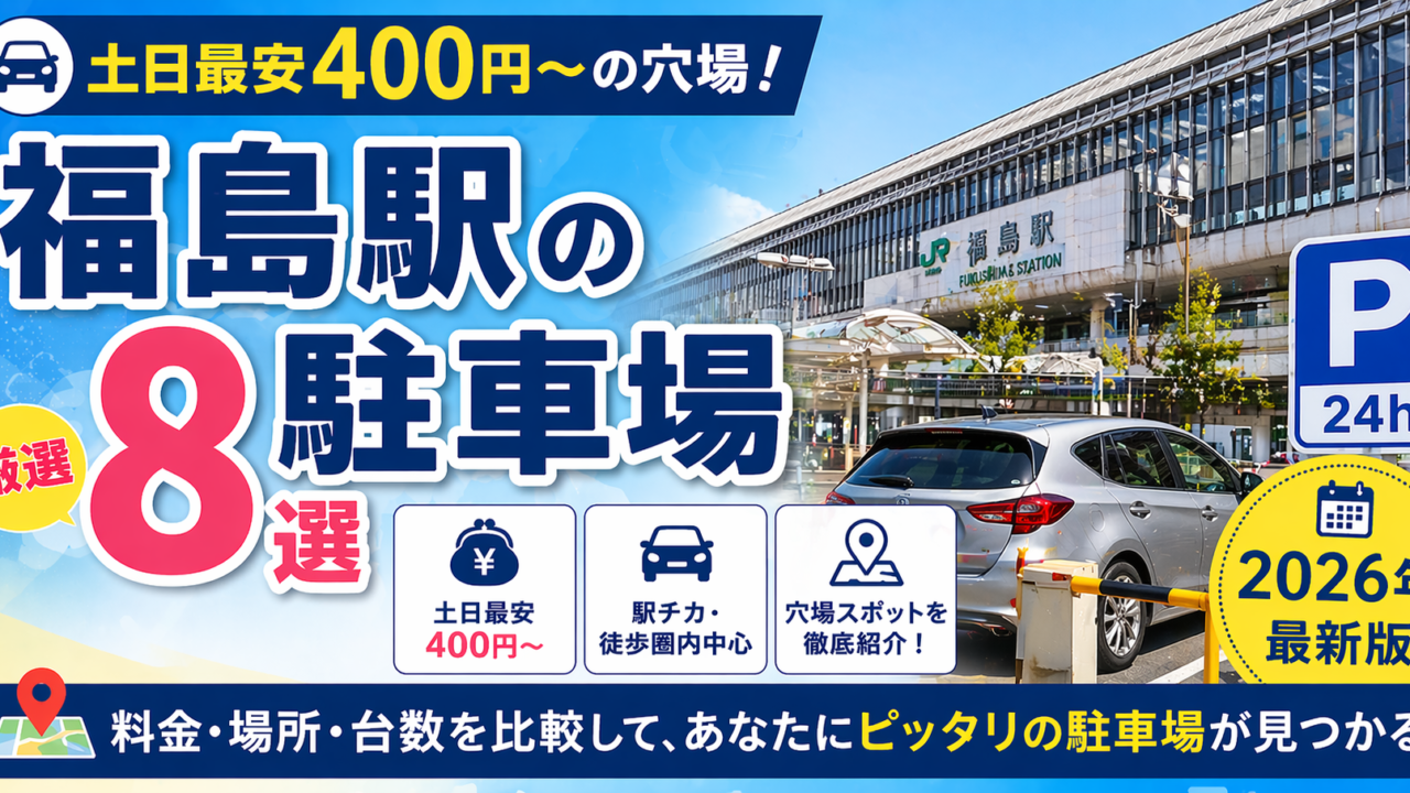 この記事では、福島駅で土日に安く停められる駐車場を料金比較表付きで紹介します。満車を避ける時間帯・予約のコツ・目的別おすすめまで実体験ベースで解説します。