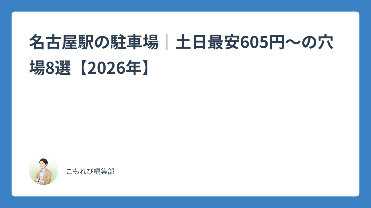 この記事では、名古屋駅で土日に安く停められる駐車場8選を料金比較表付きで紹介します。満車を避ける時間帯・予約のコツ・目的別おすすめまで実体験ベースで解説します。