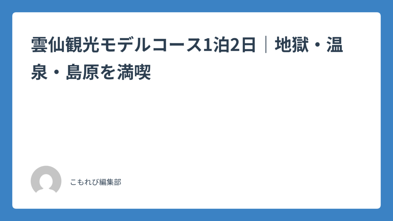 雲仙は長崎県の島原半島に位置し、雲仙地獄・仁田峠の絶景・良質な温泉・島原城下町が1泊2日でコンパクトに楽しめる観光地です。「どのルートで回ればいいかわからない」「効率よく見どころを押さえたい」という方に向けて、時間付きのモデルコースを組みました。